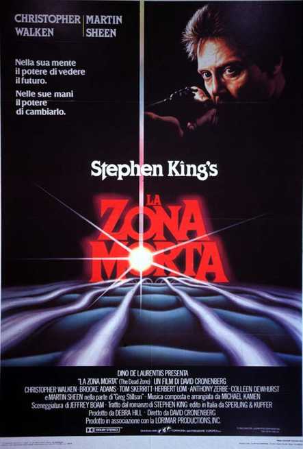 La zona morta è un film del 1983 diretto da David Cronenberg, basato sull’omonimo romanzo di Stephen King del 1979. Christopher Walken è il protagonista di questa pellicola, nella quale recita con Tom Skerritt e Martin Sheen.